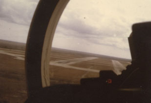 On the first flight in the T2 my instructor pointed out the angle-of-attack system, the mirror or "meat-ball" adjacent to the runway that all Navy pilots used to go aboard the carrier. He said that although it wasn't part of the training to use this equipment during the early phases of the training program, it was good to start taking them into account as soon as possible.