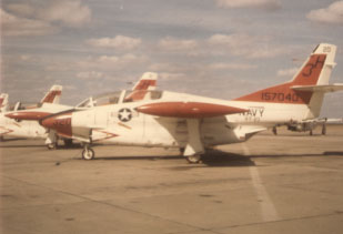 Initial flight training consisted of Basic Instrument flying techniques and landings and acrobatics. About half of the instrument training flights were actually in flight simulators. These simulators cost more than one million dollars back in 1970 and consisted of 2 PDP11/45 real-time computers and a T2 cockpit supported by a hydraulic motion system to make the student experience the motion of flight.